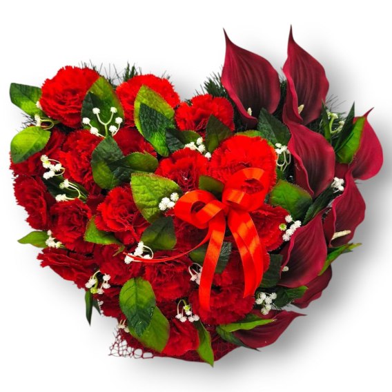 STROIK NA POMNIK SERCE XL KOMPOZYCJA KWIATOWA NA GRÓB GOŻDZIKI KALIE