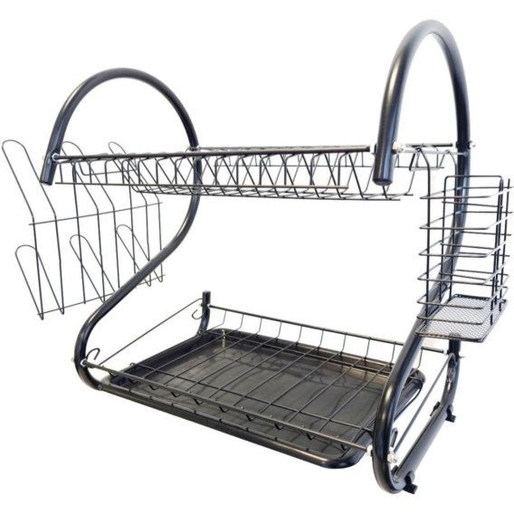 Dwupoziomowa konstrukcja- dwupoziomowy układ umożliwia jednoczesne suszenie talerzy, misek i mniejszych naczyń. Pozwala lepiej wykorzystać przestrzeń roboczą na blacie. To rozwiązanie idealne do kuchni, w których liczy się każdy centymetr.