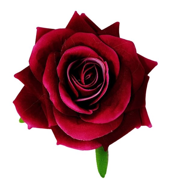SZTUCZNY KWIAT RÓŻY BORDOWA CZERWONA RÓŻA GŁÓWKA WYROBOWA WELUR
