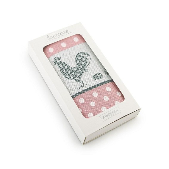 Ścierka kuchenna 50x70 Folk w pudełku kogut różowa na prezent 8639/1
