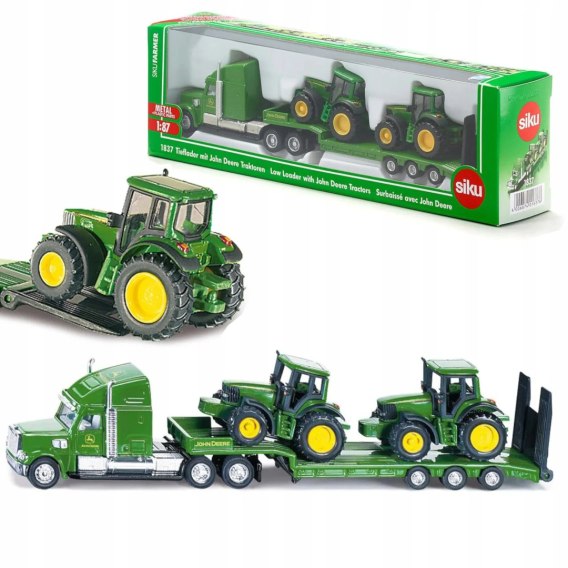 Zabawka została wykonana nawzór prawdziwej ciężarówki i wyposażona jest w odczepianą naczepę i ruchomą rampę, co pozwoli dziecku poczuć się jak rolnik. W zestawie są dodatkowo dwa traktory do przewożenia na naczepie, a dzięki ruchomej rampie mogą zjeżdżać z ciężarówki.