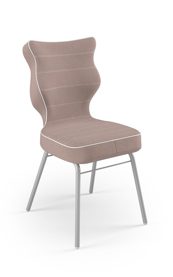 Tworzymy tylko zdrowe krzesła! Liczne badania potwierdzają, że około 70% dzieci w wieku szkolnym posiada błędy lub wady postawy. Dobre Krzesła dostosowane są do wzrostu użytkownika i występują w 4 rozmiarach. Pamiętaj aby odpowiednio dopasować rozmiar krzesła do wzrostu dziecka. Czym są Dobre Krzesła? Dobre Krzesła to linia produktów ergonomicznych, które dzięki posiadanym parametrom oraz najwyższym standardom w zakresie ergonomii sprzyjają wyrabianiu prawidłowej pozycji siedzącej, a w konsekwencji wspomagają prawidłowy rozwój kręgosłupa. Krzesła poprzez wyprofilowanie lordozy lędźwiowej wymuszają obciążenie guzów kulszowych, stymulują prawidłową pozycję miednicy, która jest podstawą właściwego ustawienia górnych segmentów kręgosłupa. Dobre Krzesła zostały zaprojektowane zgodnie z Normą PN-EN 1729 dzięki czemu posiadają rozmiary dedykowane do wzrostu użytkownika. Sprawia to, że w przypadku najmłodszych krzesła mogą „rosnąć" razem z nimi. Krzesło młodzieżowe Solo Solo to połączenie miękkiego, tapicerowanego siedziska ze stelażem w kolorze popiel. Jako krzesło stacjonarne pozwala na wielogodzinną naukę z zachowaniem prawidłowej pozycji siedzącej. Dostępność w wielu rozmiarach oraz szeroka kolorystyka tkanin pozwala dopasować model do wystroju wnętrza pokoju dziecięcego i młodzieżowego. Produkt zaprojektowany i wyprodukowany w Polsce. Specyfikacja tkaniny Jasmine Kolorystyka: czarny, szary, niebieski, różowy, ciemny szary Kolor przeszyć: biały Kolor lamówki: biały Gramatura: 250 g/m2 Skład: 100% poliester Ścieralność: 100 000 cykli Tkanina przeszła test zapalności zgodnie z Normą EN1021-1 Jak dobrać odpowiedni rozmiar krzesła do wzrostu dziecka? Kręgosłup jako główny stabilizator ciała wymaga wsparcia w okresie dojrzewania, kiedy rośniemy i się rozwijamy. Mając 130 cm wzrostu poszczególne odcinki kręgosłupa znajdują się na innej wysokości niż w momencie kiedy osiągniemy 170 cm wzrostu. Z punktu ergonomii jest to niezwykle ważne, aby krzesło było odpowiednio dopasowane do wzrostu dziecka czy dorosłego. Rozmiary Dobrych Krzeseł są zaprojektowane w taki sposób, aby na każdym etapie rozwoju wspierały kręgosłup poprzez zachowanie krzywizn i uwypukleń , które odzwierciadlają naturalne ułożenie kręgosłupa. Certyfikaty i atesty Tworzenie nowoczesnych przestrzeni i wnętrz to tworzenie przestrzeni bezpiecznych. W tym celu konieczne jest zastosowanie wyposażenia, które nie tylko nie zagraża zdrowiu użytkowników, lecz aktywnie bądź pasywnie wspomaga funkcje ochronne. Produkty przedstawione w naszej ofercie są zaprojektowane zgodnie z powyższą ideą. Produkt posiada certyfikat zgodności z Normą PN-EN 1729-1:2016-02 oraz PN-EN 1729-2+A1:2016-02. Szczegóły Siedzisko Ergonomiczne siedzisko wykonane z tworzywa sztucznego Baza Stelaż wykonany ze stali, średnica 22 mm Stopki Stopki antypoślizgowe wykonane z tworzywa sztucznego