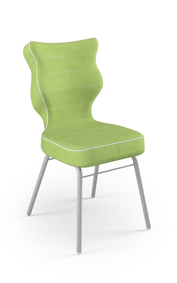 Tworzymy tylko zdrowe krzesła! Liczne badania potwierdzają, że około 70% dzieci w wieku szkolnym posiada błędy lub wady postawy. Dobre Krzesła dostosowane są do wzrostu użytkownika i występują w 4 rozmiarach. Pamiętaj aby odpowiednio dopasować rozmiar krzesła do wzrostu dziecka. Czym są Dobre Krzesła? Dobre Krzesła to linia produktów ergonomicznych, które dzięki posiadanym parametrom oraz najwyższym standardom w zakresie ergonomii sprzyjają wyrabianiu prawidłowej pozycji siedzącej, a w konsekwencji wspomagają prawidłowy rozwój kręgosłupa. Krzesła poprzez wyprofilowanie lordozy lędźwiowej wymuszają obciążenie guzów kulszowych, stymulują prawidłową pozycję miednicy, która jest podstawą właściwego ustawienia górnych segmentów kręgosłupa. Dobre Krzesła zostały zaprojektowane zgodnie z Normą PN-EN 1729 dzięki czemu posiadają rozmiary dedykowane do wzrostu użytkownika. Sprawia to, że w przypadku najmłodszych krzesła mogą „rosnąć" razem z nimi. Krzesło młodzieżowe Solo Solo to połączenie miękkiego, tapicerowanego siedziska ze stelażem w kolorze popiel. Jako krzesło stacjonarne pozwala na wielogodzinną naukę z zachowaniem prawidłowej pozycji siedzącej. Dostępność w wielu rozmiarach oraz szeroka kolorystyka tkanin pozwala dopasować model do wystroju wnętrza pokoju dziecięcego i młodzieżowego. Produkt zaprojektowany i wyprodukowany w Polsce. Specyfikacja tkaniny Visto Kolorystyka: czarny, szary, zielony, niebieski, fioletowy, różowy, czerwony, beżowy Kolor przeszyć: biały Kolor lamówki: biały Gramatura: 255 g/m2 Skład: 100% poliester Ścieralność: 45 000 cykli Jak dobrać odpowiedni rozmiar krzesła do wzrostu dziecka? Kręgosłup jako główny stabilizator ciała wymaga wsparcia w okresie dojrzewania, kiedy rośniemy i się rozwijamy. Mając 130 cm wzrostu poszczególne odcinki kręgosłupa znajdują się na innej wysokości niż w momencie kiedy osiągniemy 170 cm wzrostu. Z punktu ergonomii jest to niezwykle ważne, aby krzesło było odpowiednio dopasowane do wzrostu dziecka czy dorosłego. Rozmiary Dobrych Krzeseł są zaprojektowane w taki sposób, aby na każdym etapie rozwoju wspierały kręgosłup poprzez zachowanie krzywizn i uwypukleń , które odzwierciadlają naturalne ułożenie kręgosłupa. Certyfikaty i atesty Tworzenie nowoczesnych przestrzeni i wnętrz to tworzenie przestrzeni bezpiecznych. W tym celu konieczne jest zastosowanie wyposażenia, które nie tylko nie zagraża zdrowiu użytkowników, lecz aktywnie bądź pasywnie wspomaga funkcje ochronne. Produkty przedstawione w naszej ofercie są zaprojektowane zgodnie z powyższą ideą. Produkt posiada certyfikat zgodności z Normą PN-EN 1729-1:2016-02 oraz PN-EN 1729-2+A1:2016-02. Szczegóły Siedzisko Ergonomiczne siedzisko wykonane z tworzywa sztucznego Baza Stelaż wykonany ze stali, średnica 22 mm Stopki Stopki antypoślizgowe wykonane z tworzywa sztucznego