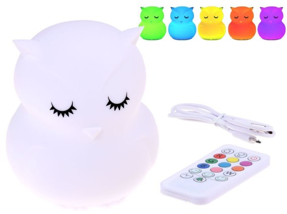 Sowa Silikonowa miękka lampka nocna led RBG + pilot ZA3295