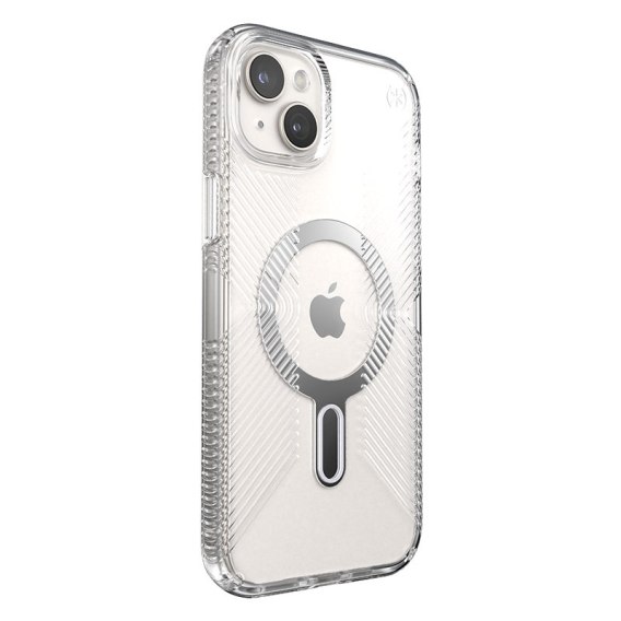 Speck Presidio® Perfect-Clear Grip MagSafe® z technologią antypoślizgową ClickLock™ Interlock to przezroczyste etui z wbudowanym magnesem, kompatybilnym z akcesoriami Apple MagSafe®.