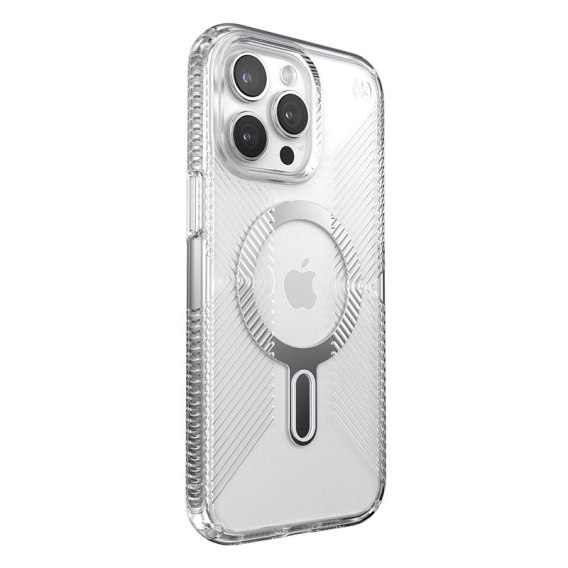 Speck Presidio® Perfect-Clear Grip MagSafe® z technologią antypoślizgową ClickLock™ Interlock to przezroczyste etui z wbudowanym magnesem, kompatybilnym z akcesoriami Apple MagSafe®.
