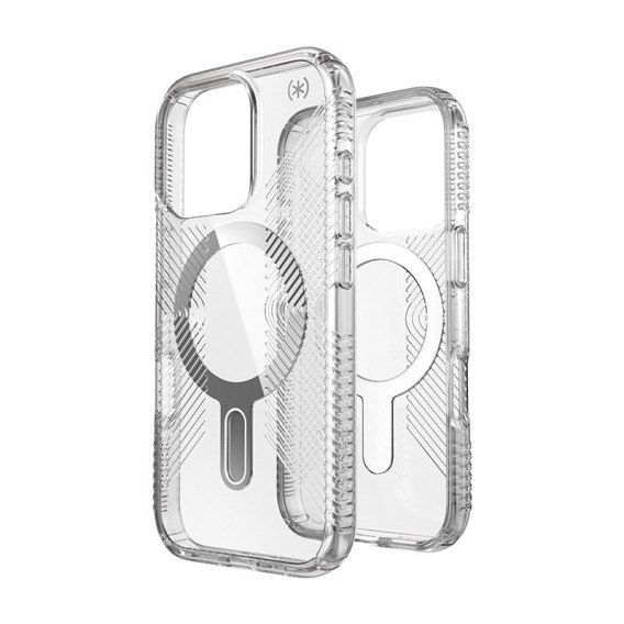 Speck Presidio® Perfect-Clear Grip MagSafe® z technologią antypoślizgową ClickLock™ Interlock to przezroczyste etui z wbudowanym magnesem, kompatybilnym z akcesoriami Apple MagSafe®.