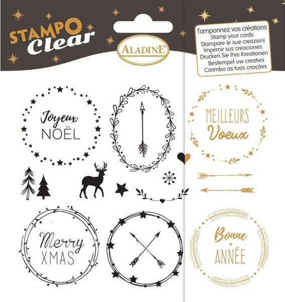Giętkie stempelki z silikonu na arkuszu 15x12,5 cm. Wymagają rączki w postaci bloku akrylu lub szkła, do której przyczepiają się na zasadzie przyssawki. Boże narodzenie pełne w stroiki.