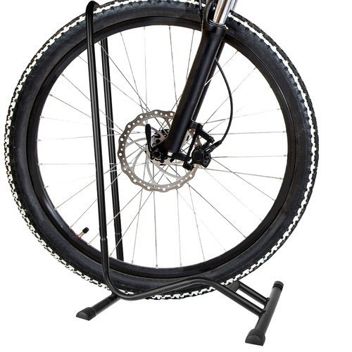 - SPECYFIKACJA - materiał: stal, pozostałe: guma; kolor: czarny; wielkość koła: 16-29"; składany: z 2 części; proste parkowanie: przodem lub tyłem; wolnostojący; jednostanowiskowy; antypoślizgowe stopki; odległość między rurkami: 6,5cm; wymiary: 75,5/40/37cm; waga: 1,3kg.