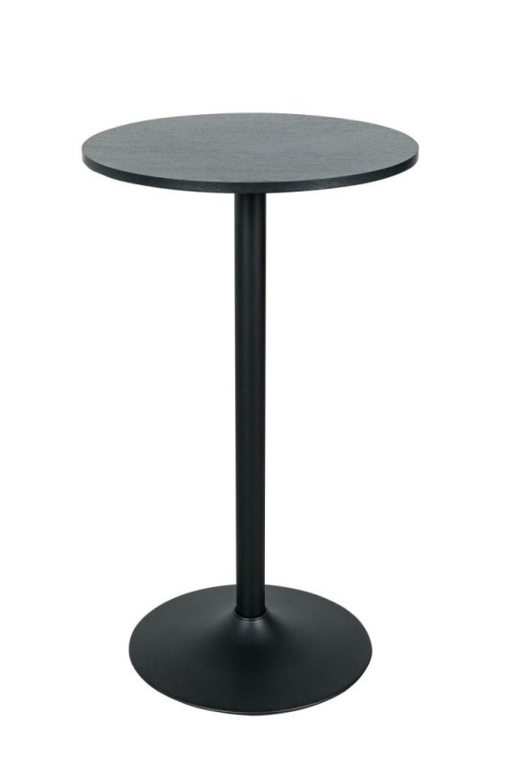 Czarny, wysoki stół barowy to połączenie metalowej, czarnej, malowanej proszkowo nogi stołu w kształcie trąbki oraz czarnego, okrągłego blatu wykonanego z płyty MDF. Stół barowy o wysokości 104 cm sprawdzi się jako dodatkowe miejsce siedzące przy wysokim oknie. Czarny stół barowy posiada okrągły b;at o średnicy 60 cm. Jego prosta i minimalistyczna budowa gwarantuje, że jest on uniwersalnym meblem, który dopasuje się do baru, restauracji lub nawet nowoczesnej kawiarni. Wymiary opakowania: 90x90x7cm