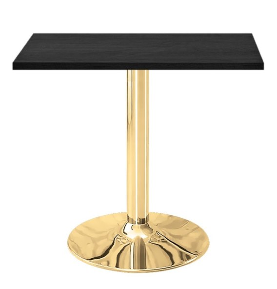 TORI 70x70 - Kwadratowy stół z blatem w kolorze czarnego drewna na złotej nodze - minimalistyczny, a zarazem efektowny mebel do salonu lub jadalni.