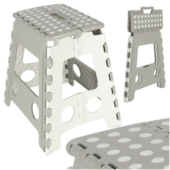 STOŁEK TABORET SKŁADANY ANTYPOŚLIZGOWY WYSOKI 39CM JASNOSZARY