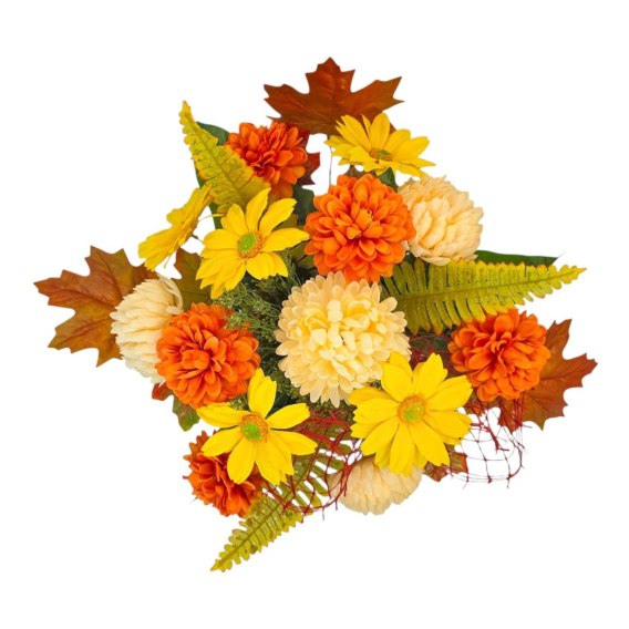 • Realistyczne i naturalne kwiaty: Nasz stroik zawiera unikalną kompozycję kwiatów, które wyglądają naturalnie i realistycznie, dodając autentyczności oraz elegancji.