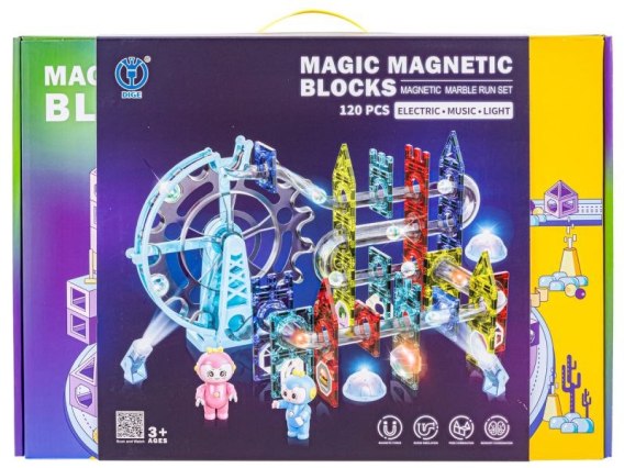 Świecące Klocki Magnetyczne, Tor Kulkowy Dla Kulek 120 Elementów Kulodrom