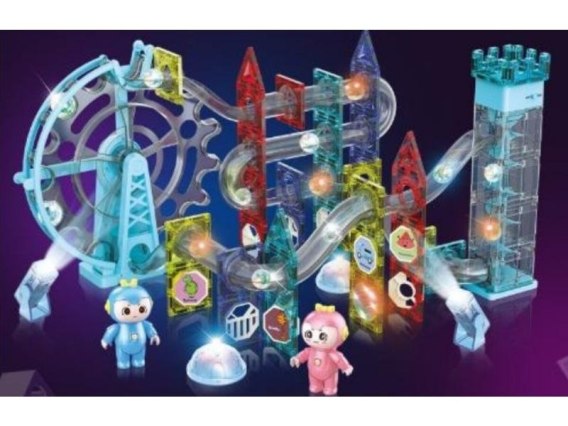 Świecące Klocki Magnetyczne, Tor Kulkowy Dla Kulek 129 Elementów Kulodrom