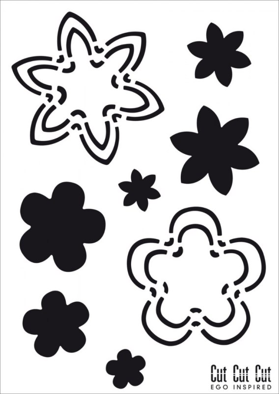 Samoprzylepny szablon z cienkiego, giętkiego plastiku. Klej na szablonie jest niepermanentny, co pozwala przyklejać go do różnych powierzchni i odklejać z łatwością. Równo przyklejony zapobiega podciekaniu farby pod spód. Nadaje się do użytku na tkaninach, betonie, drewnie, szkle itp. Można na nim stosować farby akrylowe lub naturalne, kleje, farby lub tusze do tkanin, pasty strukturalne, farby w sprayu itp. Nieodpowiednie dla dzieci w wieku poniżej 36 miesięcy. Wymiary arkusza 29,7x21 cm. Made in Europe. Używając szablonu pokryte farbą zostaną ciemniejsze przestrzenie (patrząc na pierwsze zdjęcie).