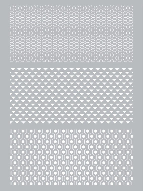Niesamoprzylepny szablon zainspirowany techniką sitodruku (Silkscreen), ale gotowy do użycia bez specjalistycznych narzędzi. Zrobiony z siateczki, na której tło wzoru zostało zamalowane nieprzepuszczającym farby preparatem. Dzięki temu uzyskany obrazek ma wiele detali, których nie dałoby się uzyskać na szablonach tradycyjnych. Drobne wzory zaprojektowano z myślą stworzeniu wspaniałych dekoracji na modelinie przy pomocy farb akrylowych, pudrów do modeliny itp. Szablonu można również użyć na innych masach plastycznych oraz na wszystkich innych powierzchniach stosując farby, tusze i inne preparaty. Do nakładania farby możemy użyć pędzli, gąbki lub rakli zrobionej z kawałka plastiku czy też sztywnej tekturki (np.starej wizytówki). Szablon należy umyć wodą od razu po użyciu i zostawić do wysuszenia. Nieodpowiednie dla dzieci w wieku poniżej 36 miesięcy. Wymiary arkusza 15,3x11,4 cm.
