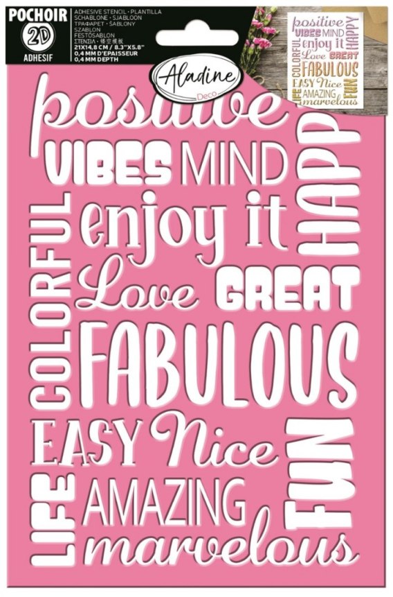 Samoprzylepny szablon z silikonu. Szablon jest bardzo elastyczny, co pozwala na użycie go na przedmiotach o nieregularnych kształtach. Ma grubość około 0,6 mm dzięki czemu użycie past 3D daje wyraźne, wypukłe wzory. Klej na szablonie jest niepermanentny, co pozwala przyklejać go do różnych powierzchni i odklejać z łatwością. Równo przyklejony zapobiega podciekaniu farby pod spód. Nadaje się do użytku na tkaninach, betonie, drewnie, szkle itp. Można na nim stosować farby akrylowe lub naturalne, kleje, farby lub tusze do tkanin, pasty strukturalne, farby w sprayu itp. Nieodpowiednie dla dzieci w wieku poniżej 36 miesięcy. Wymiary arkusza około 21x14,8 cm.