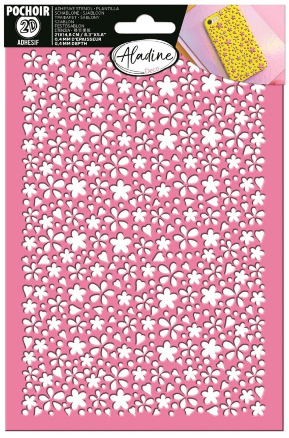 Samoprzylepny szablon z silikonu. Szablon jest bardzo elastyczny, co pozwala na użycie go na przedmiotach o nieregularnych kształtach. Ma grubość około 0,6 mm dzięki czemu użycie past 3D daje wyraźne, wypukłe wzory. Klej na szablonie jest niepermanentny, co pozwala przyklejać go do różnych powierzchni i odklejać z łatwością. Równo przyklejony zapobiega podciekaniu farby pod spód. Nadaje się do użytku na tkaninach, betonie, drewnie, szkle itp. Można na nim stosować farby akrylowe lub naturalne, kleje, farby lub tusze do tkanin, pasty strukturalne, farby w sprayu itp. Nieodpowiednie dla dzieci w wieku poniżej 36 miesięcy. Wymiary arkusza około 21x14,8 cm.