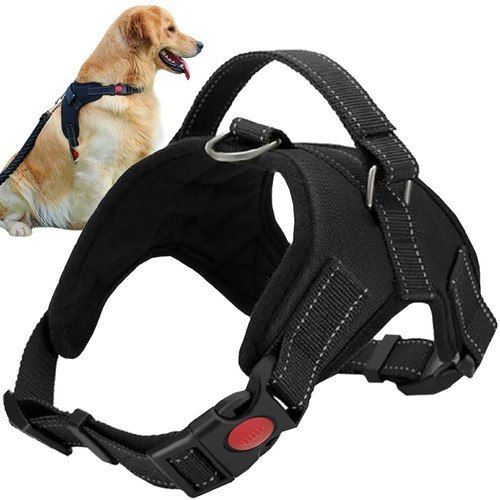 - SPECYFIKACJA - rozmiar: M; materiał: poliester, wypełnienie: bawełna, pozostałe: nylon + PP + stal nierdzewna; bezuciskowe; blokada na klamrach; odblaskowe; zaczep na smycz; dodatkowy uchwyt; łatwa regulacja; waga psa do 30kg; obwód szyi: 45-56cm; obwód klatki piersiowej: 52-64cm; waga: 0,150kg; waga w opakowaniu: 0,161kg.