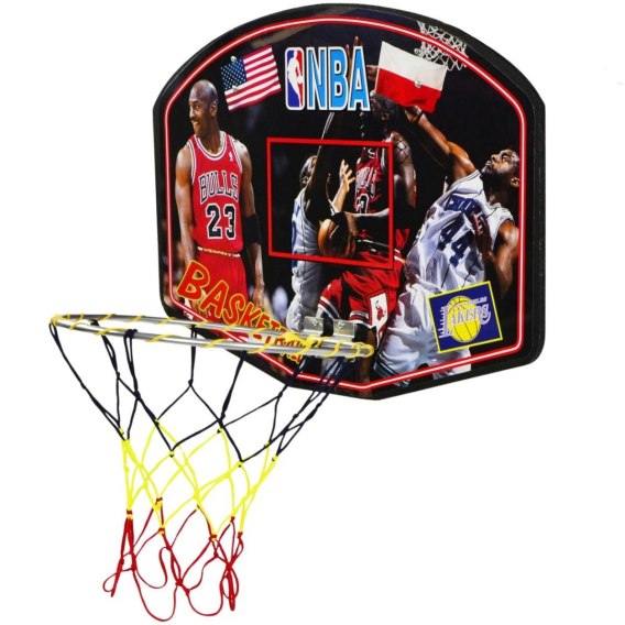 • W zestawie: tablica, siatka, obręcz, 2 haki do zawieszenia, śruby do haków