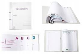 * dwustronnie zadrukowane przekładki A, B, C, D o gramaturze 80 g/m2 z ekologicznego papieru offsetowego z opisem tematycznie segregowanych dokumentów akt osobowych