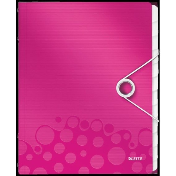 Teczka PP z gumką Leitz Wow A4 12 przekładek, RÓŻOWY