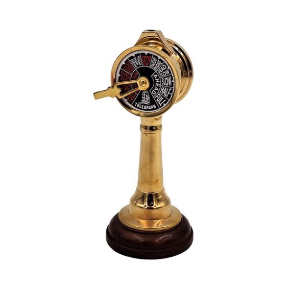 Miniaturka Telegrafu Maszynowego to nie lada gratka dla miłośnika morskiej żeglugi i marynarza. Telegraf Okrętowy to dekoracja nautyczna, której nie może zabraknąć w morskich aranżacjach. Wysokość 15 cm.