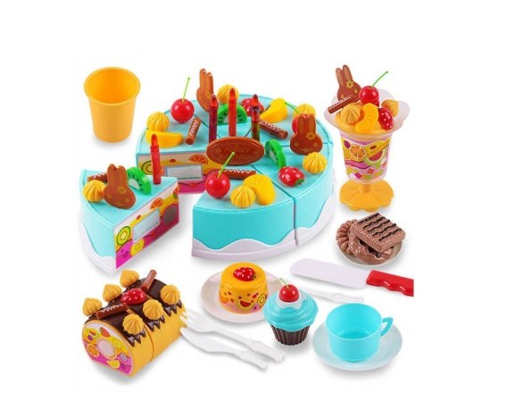 Tort urodzinowy do krojenia kuchnia 75 elementów niebieski