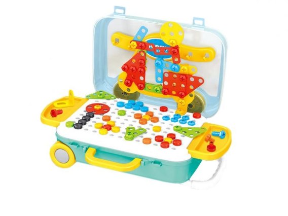 Układanka, Klocki, Kreatywna Mozaika, Wkrętarka 6w1 Śrubki 258 El. Walizka Na Kółkach