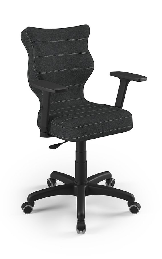Pamiętaj aby odpowiednio dopasować rozmiar krzesła do wzrostu użytkownika. Czym są Dobre Krzesła? Dobre Krzesła to linia produktów ergonomicznych, które dzięki posiadanym parametrom oraz najwyższym standardom w zakresie ergonomii sprzyjają wyrabianiu prawidłowej pozycji siedzącej, a w konsekwencji wspomagają prawidłowy rozwój kręgosłupa. Krzesła poprzez wyprofilowanie lordozy lędźwiowej wymuszają obciążenie guzów kulszowych, stymulują prawidłową pozycję miednicy, która jest podstawą właściwego ustawienia górnych segmentów kręgosłupa. Dobre Krzesła zostały zaprojektowane zgodnie z Normą PN-EN 1729 dzięki czemu posiadają rozmiary dedykowane do wzrostu użytkownika. Krzesło biurowe Uni Uni to uniwersalny model krzesła biurowego umożliwiający komfortową, wielogodzinną pracę. Posiada miękkie, tapicerowane siedzisko o ergonomicznych parametrach występujące w sześciu rodzajach tkanin. Szeroki wybór koloru tapicerki sprawia, że model pasuje do każdego wnętrza. Regulowane podłokietniki z tworzywa sztucznego umożliwiają optymalne ustawienie wysokości. Podstawę krzesła wykonano z tworzywa sztucznego oraz włókna szklanego. W zestawie znajdują się kółka miękkie umożliwiające ruch krzesła zarówno po powierzchniach twardych jak i wykładzinach. Produkt zaprojektowany i wyprodukowany w Polsce. Specyfikacja tkaniny Alta Kolorystyka: czarny, szary, grafitowy, ciemny szary Kolor przeszyć: czarny Kolor lamówki: czarny Gramatura: 400 g/m2 Skład: 100% poliester Ścieralność: 35 000 cykli Tkanina wyprodukowana w technologii MAXI CLEAN ograniczającej wchłanianie cieczy Jak dobrać odpowiedni rozmiar krzesła do wzrostu użytkownika? Kręgosłup jako główny stabilizator ciała wymaga wsparcia przez cały okres naszego życia. Człowiek o wzroście 170 cm posiada poszczególne odcinki kręgosłupa umiejscowione na innej wysokości niż człowiek o wzroście 190 cm. Z punktu ergonomii jest to niezwykle ważne, aby krzesło było odpowiednio dopasowane do wzrostu dorosłego. Rozmiary Dobrych Krzeseł są zaprojektowane w taki sposób, aby na każdym etapie rozwoju wspierały kręgosłup poprzez zachowanie krzywizn i uwypukleń, które odzwierciadlają naturalne ułożenie kręgosłupa. Certyfikaty i atesty Tworzenie nowoczesnych przestrzeni i wnętrz to tworzenie przestrzeni bezpiecznych. W tym celu konieczne jest zastosowanie wyposażenia, które nie tylko nie zagraża zdrowiu użytkowników, lecz aktywnie bądź pasywnie wspomaga funkcje ochronne. Produkty przedstawione w naszej ofercie są zaprojektowane zgodnie z powyższą ideą. Produkt posiada certyfikat zgodności z Normą PN-EN 1335-1:2004 oraz PN-EN 1335-2:2019-04. Szczegóły Siedzisko Ergonomiczne siedzisko wykonane z tworzywa sztucznego Podłokietniki Podłokietniki regulowane wykonane z tworzywa sztucznego, twarda nakładka Mechanizm Blacha siedziska z dźwignią prostą wykonana ze stali Kolumna Podnośnik gazowy wykonany ze stali i tworzywa sztucznego Zgodność z Normą EN 1335 Osłonka Teleskopowa osłonka na podnośnik gazowy wykonana z tworzywa sztucznego Baza Podstawa pięcioramienna wykonana z tworzywa sztucznego i włókna szklanego Kółka Kółka miękkie wykonane z tworzywa sztucznego, średnica 50 mm, średnica trzpienia fi 11