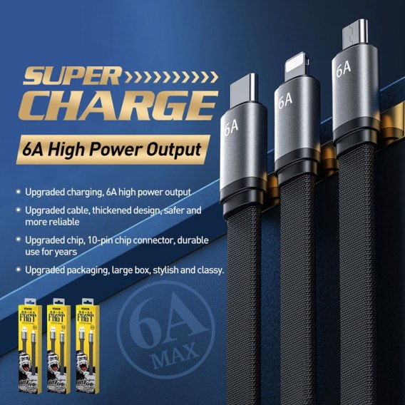 • WEKOME WDC-156 King Kong 2nd gen - Kabel połączeniowy USB-A do USB-C 6A Fast Charging 1.3 m (Czarny)