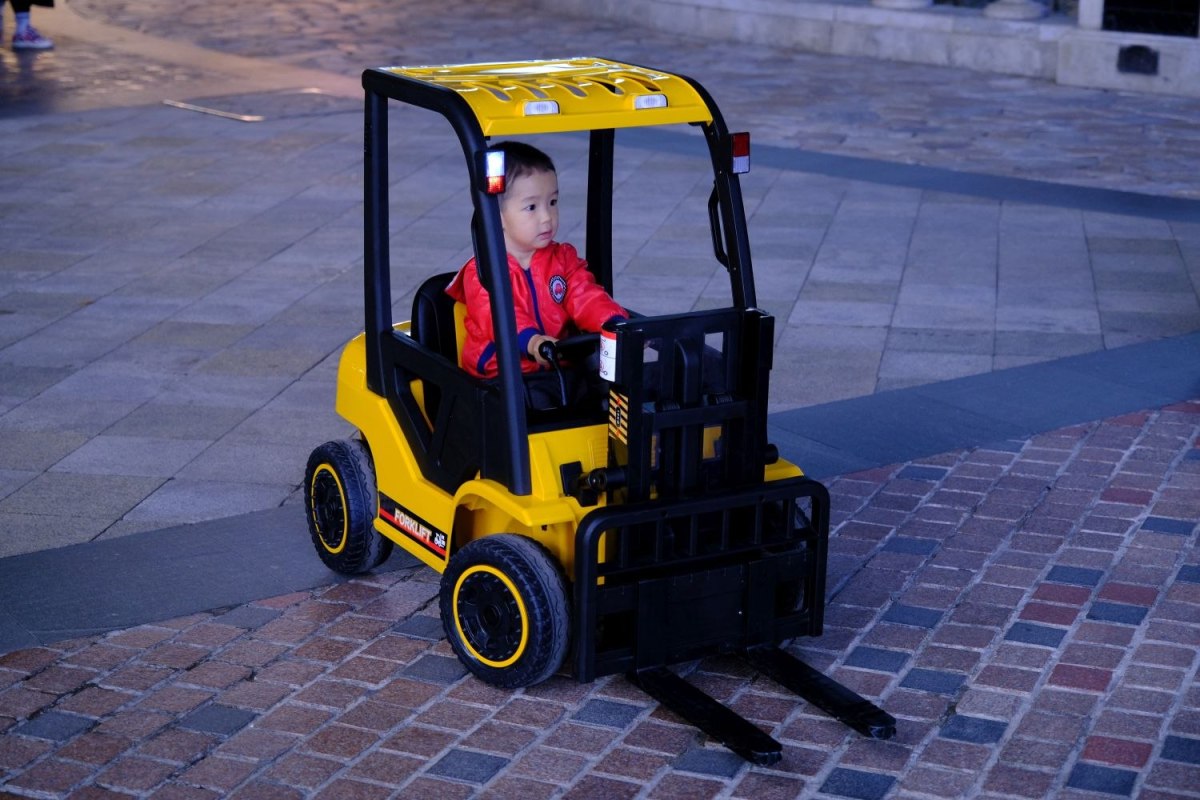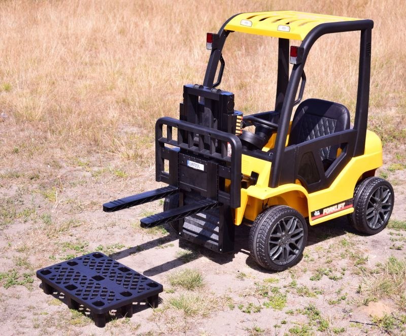 Wózek widłowy napędzany dwoma silnikami 45 W z całą pewności zainteresuje młodego wielbiciela jazdy tym pojazdem.
