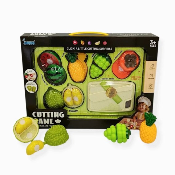 • ✅ 7 elementów (5 owoców/warzyw + deska + nóż)