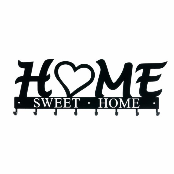 Wieszak ścienny Home Sweet Home to stylowe rozwiązanie do przedpokoju, holu lub poczekalni. Jego precyzyjnie wycięty laserowo wzór nada uroku każdemu wnętrzu. Stalowy malowany proszkowo wieszak jest uniwersalny oraz odporny na uszkodzenia. Matowe wykończenie dodaje listwie klasy. Dzięki aż 8 haczykom o udźwigu do 3kg każdy, możemy powiesić na wieszaku klucze, kurtki lub nawet torby. Produkt dostępny jest w dwóch kolorach co zwiększa jego możliwości aranżacyjne. Maksymalne obciążenie to 24kg. Do wieszaka załączany jest zestaw montażowy, który składa się z kołków, zaślepek i śrubek.