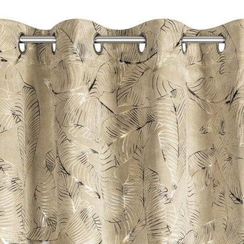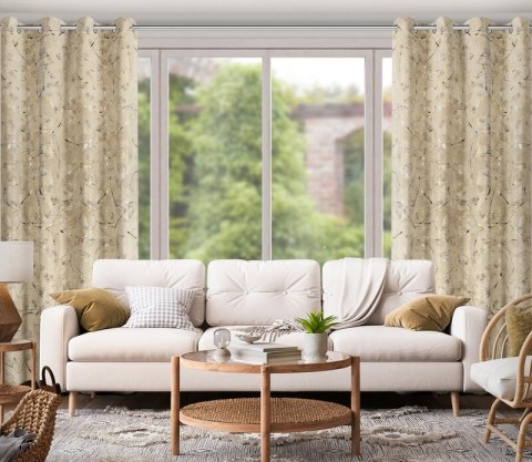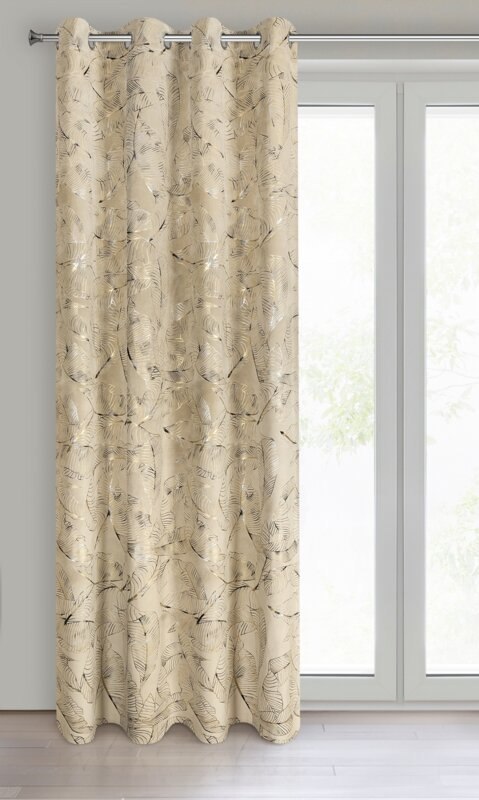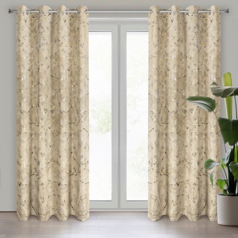 Zasłona 135x250 Odeta beżowa szara z szampańskim nadrukiem gotowa na przelotkach Eurofirany
