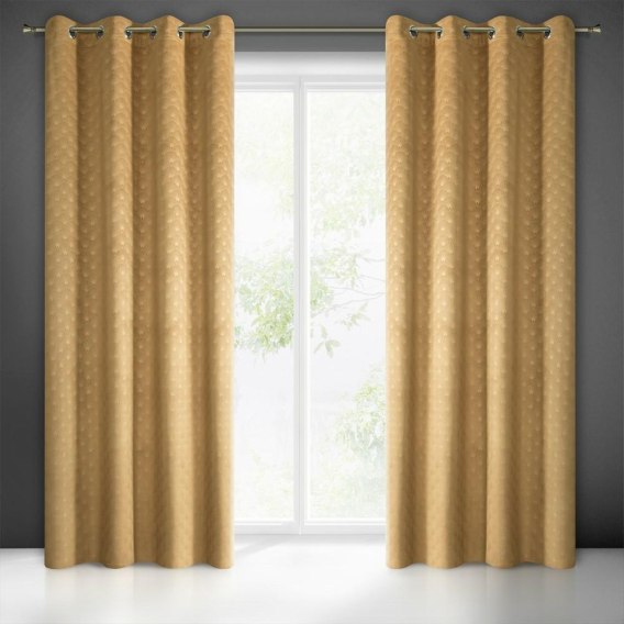 Zasłona 140x250 Julia złota gotowa na przelotkach welurowa z wytłaczanym geometrycznym wzorem wachlarzy Eurofirany