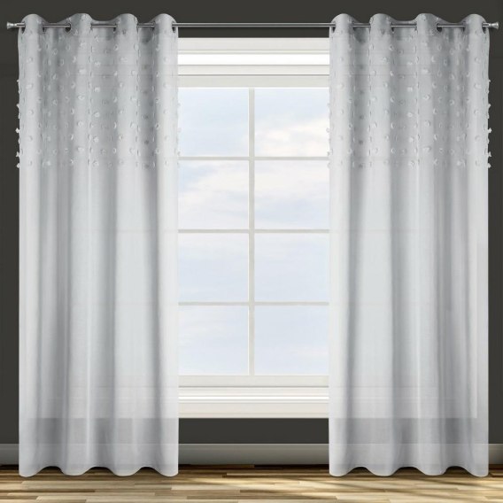 Zasłona 140x250 Stella srebrna gotowa na przelotkach z lekkiej tkaniny jednobarwna