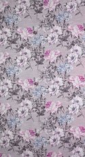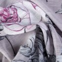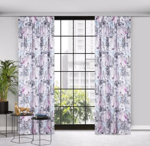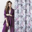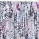 Zasłona 140x270 Honey beżowa fioletowa z kwiatowym nadrukiem z lekkiej półtransparentnej etaminy gotowa na taśmie Eurofirany
