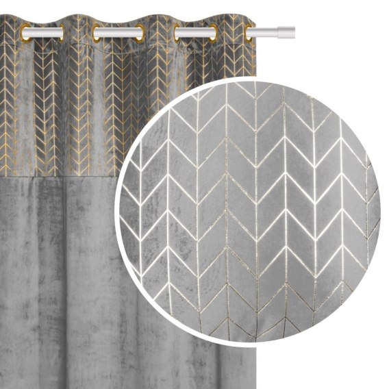 Zasłona gotowa na przelotkach 140x250 Nord popielata złota zygzak