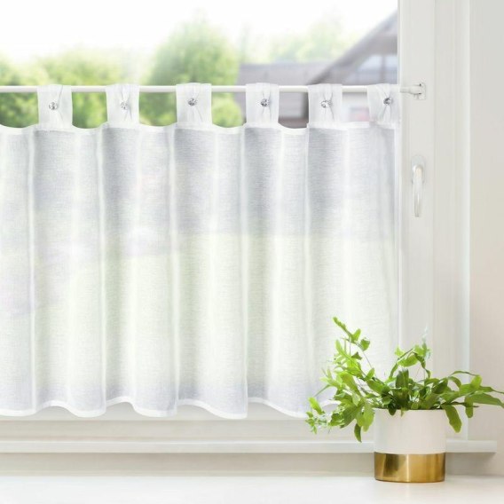 Zazdrostka 60x150 Sevilla biała gotowa na szelki z gładkiej matowej tkaniny z ozdobnymi kryształkami Eurofirany