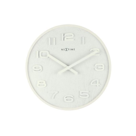 Zegar 3096 WI 'Wood Wood Medium' zaprojektowany przez NeXtime, wyposażony jest w mechanizm skokowy zasilany za pomocą baterii typu AA. Zegar wykonany z drewna w kolorze białym. Jego średnica to 35 cm.
