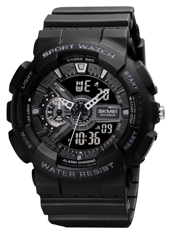 Zegarek męski Skmei 1688 to czasomierz dla mężczyzny, który ceni sobie wytrzymałość, funkcjonalność i sportowy styl. Wyposażony w solidną kopertę i mocny, gumowy pasek, Skmei 1688 sprawdzi się w najtrudniejszych warunkach - podczas treningu, na górskim szlaku czy w miejskiej dżungli. Cyfrowo-analogowa tarcza z dodatkowymi funkcjami, takimi jak stoper, alarm i podświetlenie LED, zapewnia pełen zestaw narzędzi, które mogą przydać się każdego dnia.
