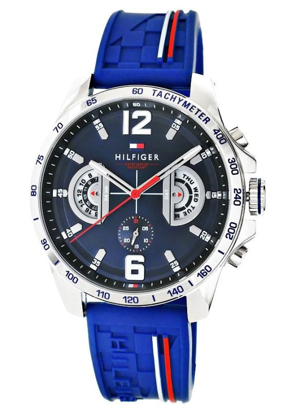- Tarcza: Analogowa z chronografami czasu dobowego 12/24h oraz datownikiem dni tygodnia i miesiąca