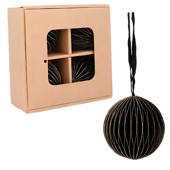 Zestaw 4 bombek papierowych składanych 7cm - głęboka czerń
