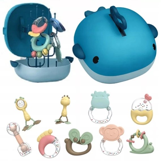 • Zestaw Grzechotek i Gryzaków dla Niemowląt z Walizką Wielorybem + Suszarka 029A-2