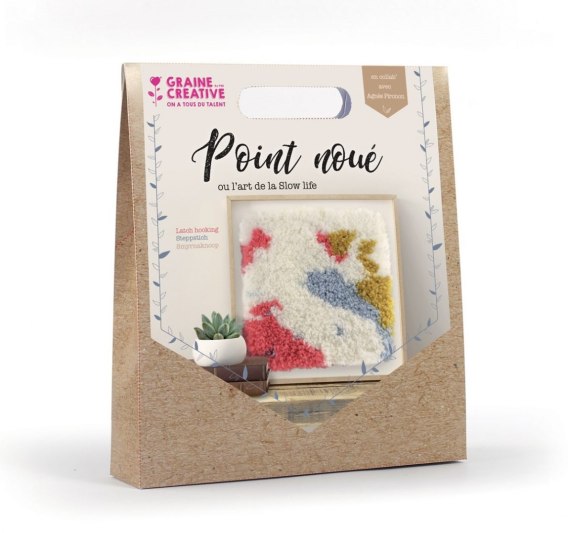Zestaw Latch Hook do stworzenia puchatego dywanika lub ozdoby na ścianę. Zestaw zawiera: - szydełko z zamykanym haczykiem, - wytrzymałą siatkę o wymiarach 34 na 34 cm, - 4 kolory włóczki, - szablon wzoru, - instrukcję obrazkową krok po kroku. Pracę zaczynamy od nawinięcia włóczki na kartonik i przycięcia jej na równe kawałki. Na siatce rysujemy nasz wzór i zgodnie z instrukcją przewlekamy szydełkiem kawałki przędzy.