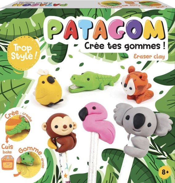 Zestaw z masą Patagom. Dla dzieci od 8-go roku życia. Patagom to wysokiej jakości masa do wykonania własnych gumek do ścierania. Można ulepić z niej dowolne kształty, zwierzątka, ludziki, potworki, auta, można użyć foremki silikonowej lub plastikowej. Po ulepieniu wkładamy dzieło do piekarnika rozgrzanego do 120 °C i pieczemy przez 15 min. Zawartość zestawu: - 8 kostek masy Patagom (8x25 g), - 3 ozdobne ołówki, - 3 plastikowe narzędzia do modelowania, - instrukcja obrazkowa krok po kroku do ulepienia wybranych kształtów. Nieodpowiednie dla dzieci w wieku poniżej 8 lat. Wypiekać pod nadzorem osoby dorosłej.