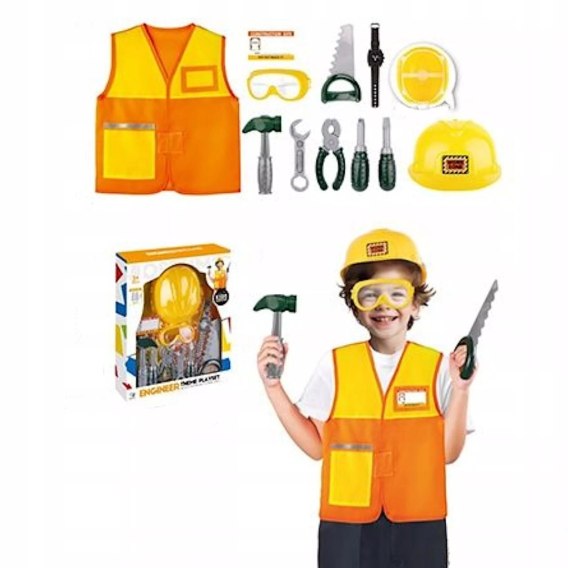 Zestaw narzędzi dla dzieci z kamizelką dla małego majsterkowicza budowlańca